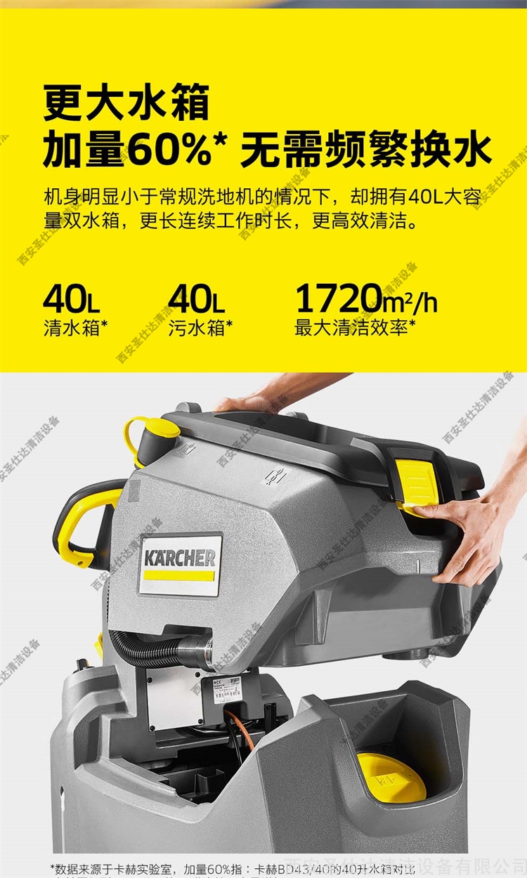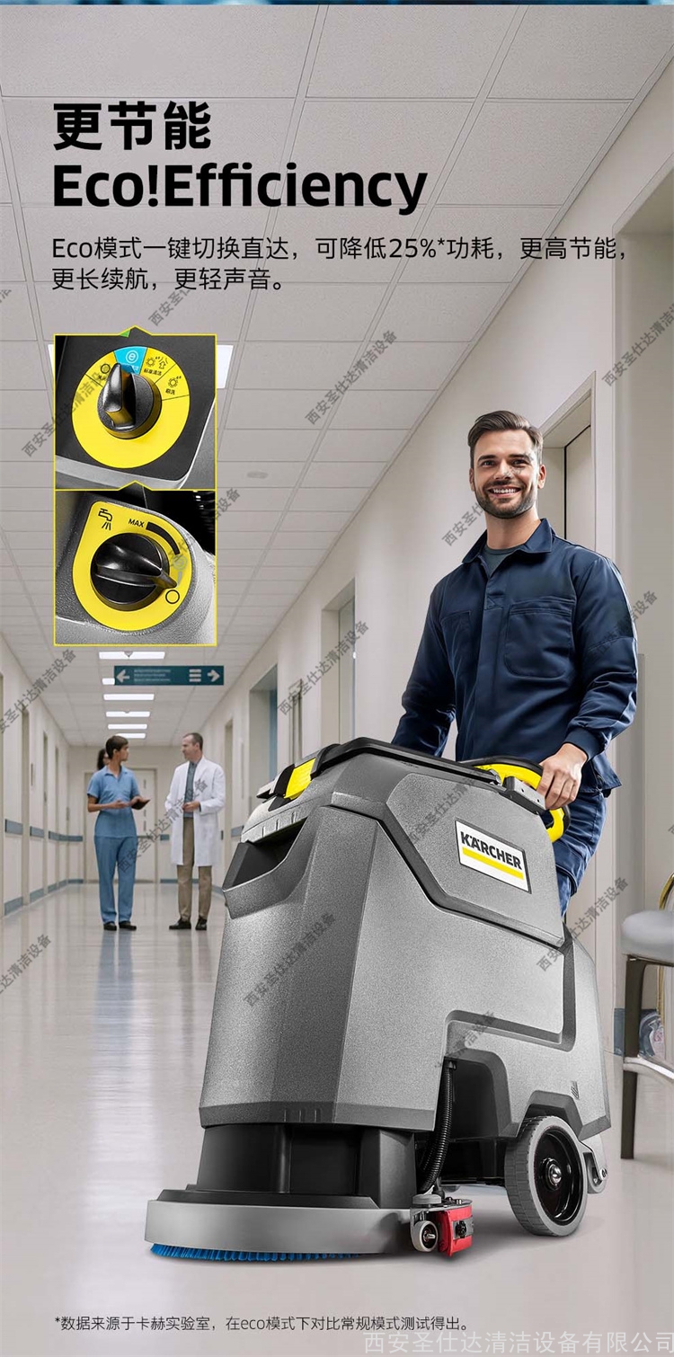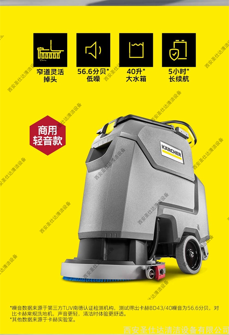 karcher卡赫BD 43/40 C Bp Classic 静音手推式走道洗地机是一款专为商用走道和厂区通道设计的高效清洁设备,适用于商场、医院、学校、办公楼及物业公共区域等对安静和清洁要求较高的场所。整机结构紧凑,转向灵活,能够轻松应对狭窄走道、拐角区域的清洗作业。该机采用电瓶驱动方式,无需外接电源线,作业更安全、范围更灵活。高效刷盘系统清洗力度均匀,可有效去除地面灰尘、脚印及轻度油污,同时不伤地坪,适用于瓷砖、环氧、PVC、石材等多种硬质地面。洗地与吸干同步完成,地面快速干燥,降低滑倒风险。运行噪音低,适合白天作业,不影响正常通行和办公。人性化手推式操作,省力易上手,清水箱与污水箱容量设计合理,减少频繁加水倒水次数。设备维护简单,易损件更换方便,是物业保洁和走道日常清洁的理想选择。